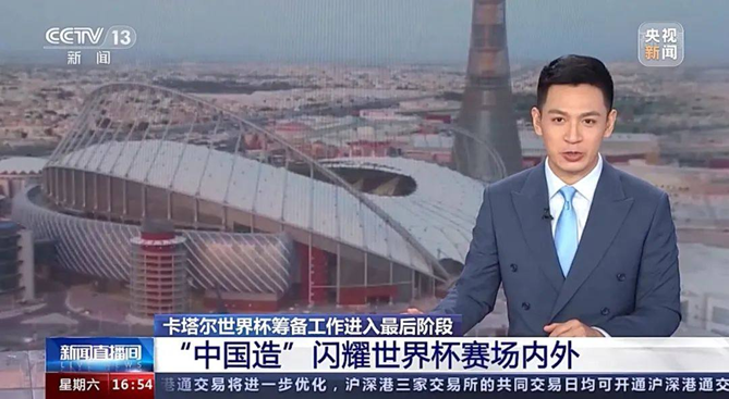 随着世界杯开赛进入100天倒计时,CCTV《新闻直播间》栏目对赛前准备工作进行了专题报道,从球场建设、到公共交通,再到网络通讯设备和生活日用品,一支由中国建造、中国制造组成的“中国军团”闪耀在赛场内外。作为世界杯运输保障工作“中坚力量”的宇通客车,成为央视的聚