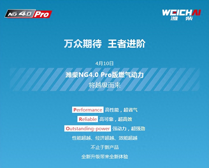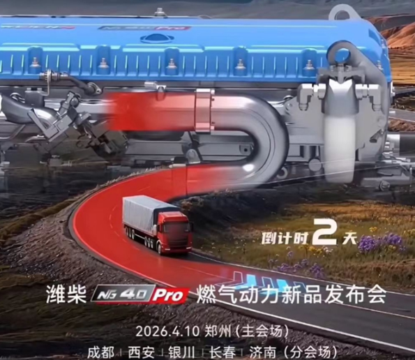 4月10日潍柴NG4.0 Pro燃气动力新品即将六城联动,重磅发布!作为NG4.0平台全新进阶力作凭借行业领先核心技术实现动力性、可靠性、舒适性全面跃升 气耗优势全面领先 覆盖复合运输、长途干线快递物流、山区高原等全领域细分场景打造定制化专