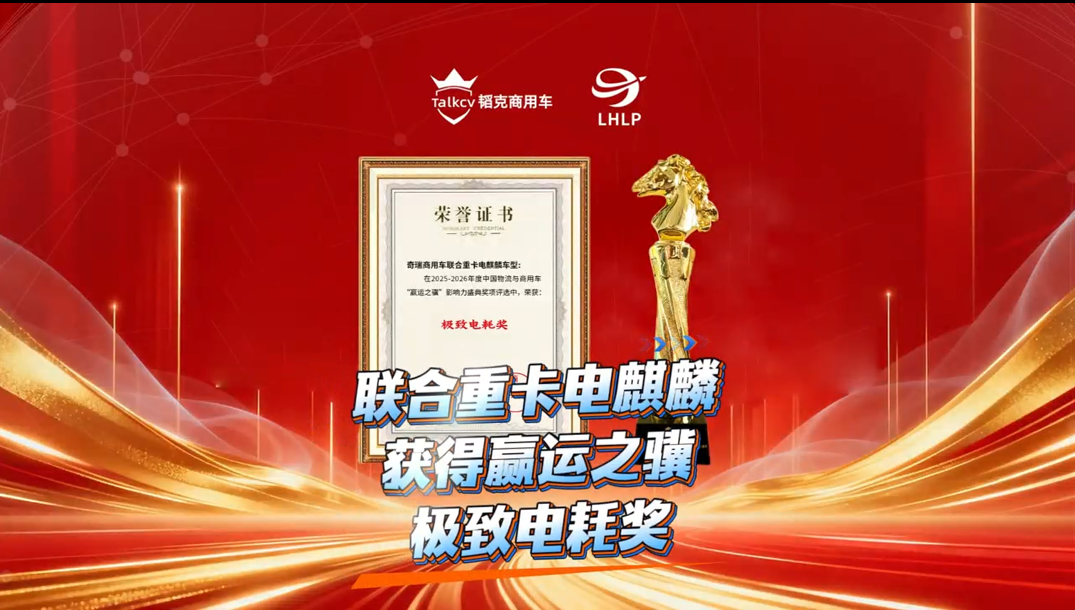 联合重卡电麒麟获得赢运之骥极致电耗奖