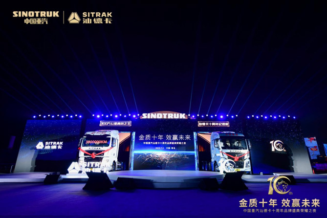 2023年7月2日,“金质十年 效赢未来 中国重汽汕德卡十周年品牌盛典荣耀之夜”在青岛举办,众多汕德卡客户代表受邀来到现场,共贺汕德卡品牌走过峥嵘十年。汕德卡功勋客户、首台达成300万公里汕德卡C7H的拥有者付忠艳倾情登台,分享自己与汕德卡携手创富的不凡历程,