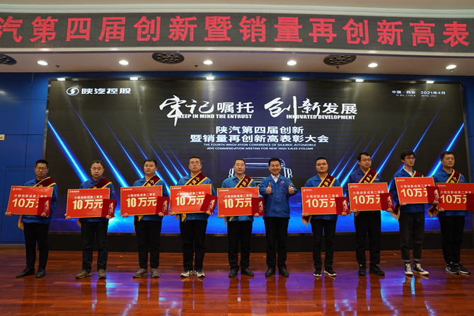 4月2日,陕汽召开第四届创新暨销量再创新高表彰大会,对过去一年来涌现的创新先进个人、先进集体以及今年一季度营销工作取得突破的办事处、项目组进行表彰奖励。陕汽控股党委书记、董事长袁宏明,党委副书记、总经理周相强,陕汽集团副总经理、陕重汽总经理支保京为获奖人员颁奖。周相强主持大会。