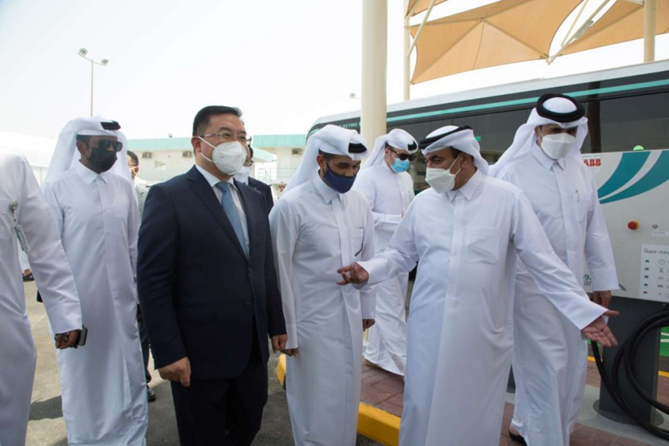 图 |卡塔尔交通通讯大臣亲自为首批宇通纯电动客车充电