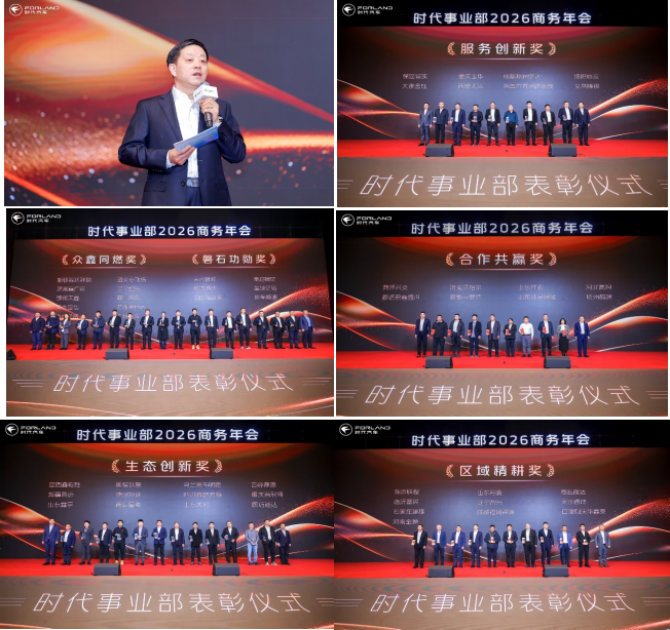 敢于超越破万难,方能赢战新天地。在即将落幕的2025年,时代事业部携手供应商、经销商、服务商及战略客户等合作伙伴不惧商用车市场风云变幻,一路逆势突围,不断收获业务新成就,铸就2026再攀高峰的底气。对此,大会特别设置“服务创新奖”、“北汽金融奖”、“合作共赢奖”、“生态创新奖”、“区域精耕奖”等奖项,针对2025年表现突出的经销商、服务商进行隆重表彰,北汽福田职能副总裁、时代事业部党委副书记戴松高主持了颁奖仪式。新的征程上,时代事业部将与更多优秀合作伙伴协同共进,资源共享、优势互补,开拓2026时代新纪元。