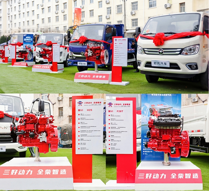 以全柴可靠动力为核心支撑,时代汽车打造多款精准适配细分运输场景的明星车型,全面覆盖城配、工程等多元作业场景:领航S1搭载全柴Q23A发动机,灵活高效;领航M5搭载全柴Q25A发动机,经济耐用;瑞沃金刚S1搭载全柴H20发动机,NVH性能更优越,驾驶更舒适;瑞沃金刚W3搭载全柴工程专属动力,皮实抗造;现场展示全柴H25发动机,该发动机装配领航G6等多种车型,属于全柴高端子品牌智威动力系列,高效可靠。