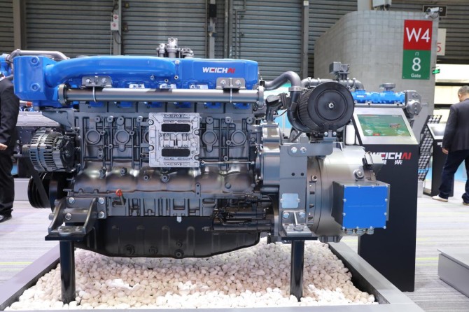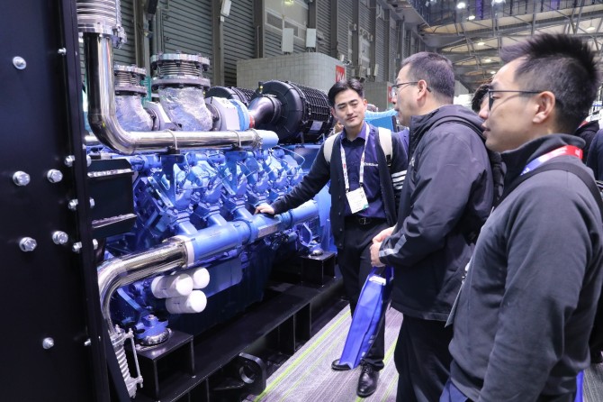 会议期间,潍柴同期举办高端海洋装备产品展示, 12WH17、WP13F柴油机及WP2.5N艇用静音机组等高端船舶动力惊艳亮相。电控高压共轨、双增压、静音机组……一大波硬核科技,诠释了真正的“实力碾压”,彰显了潍柴助力绿色航运、推动行业转型升级的信心与实力。