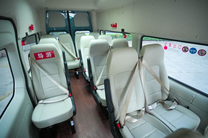 宽境空间,化解乘载焦虑。 图雅诺X8专为多人团队出行量身打造7-17座独立座椅设计,本次接待使用的15座车型座椅间距及腿部空间均满足乘坐需要,即便长时间乘坐也毫无局促感。独立行李区空间足以容纳多人行李,搭配仪表台带盖储物盒等13处超大收纳空间,让各类物品各得其所。无论是国际宾客的随行行李,还是媒体团队的拍摄器材,都能轻松安置,尽显从容。