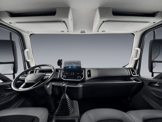 安全配置上,新车采用全新开发框架式结构白车身,高强钢占比33%,其中包含3%航空级热成型钢,用料较主流竞品更优质,为驾乘人员构建坚实防护。舒适体验方面,驾驶室优化头部与膝部空间,配备17处储物空间及实用手机支架,满足日常储物需求;标配驾驶扶手,可选全包裹气囊减震座椅、座椅通风加热功能,配合乘用化环抱式内饰与静谧设计,大幅降低长途驾驶疲劳感。针对特殊环境需求,新车还提供寒区包选项,包含双电瓶、柴滤加热及曲轴通风加热功能,确保寒区启动无忧。