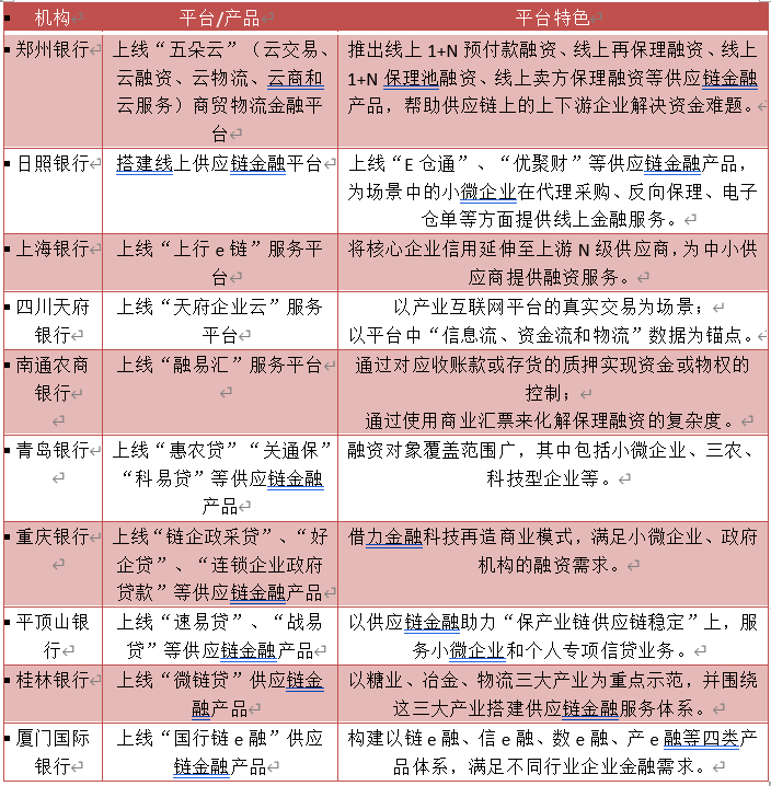 与国有大型银行相比,中小银行决策链条短,响应快,聚焦本地业务是中小银行应对日趋激烈的市场竞争的必然选择。从整体上来看,我国中小银行供应链金融发展水平个体发展差异较大,大多数中小银行供应链金融业务存在产品结构单一、风险管理构架不完善等问题。