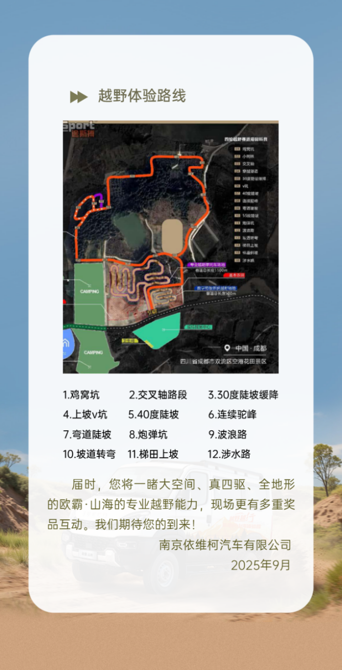 继前两期活动引爆全网、口碑炸裂之后,万众期待的越野越行——欧霸·山海体验营第三期,将于9月27日在“天府之国”——成都盛大开启!这不仅是一次简单的邀约,更是对所有渴望挣脱束缚、拥抱自然的灵魂发出的召唤。