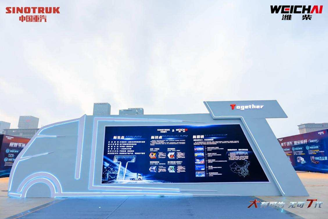 发布会现场,Tpower展区陈列的是潍柴动力为中国重汽专属定制的T系列大马力发动机。