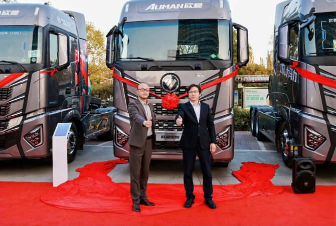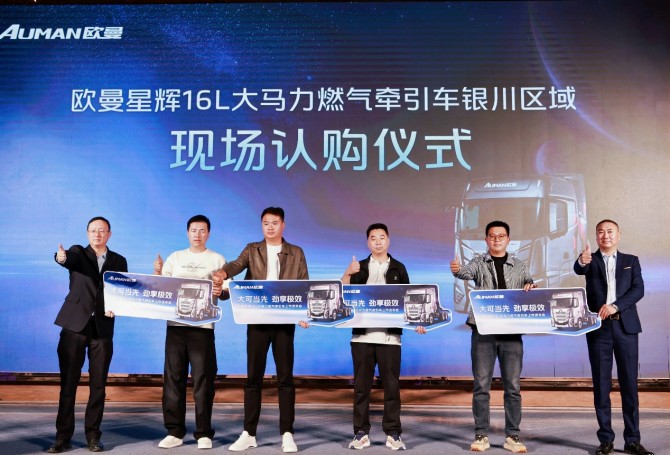 凭借高品质产品与专业保障服务,欧曼星辉16L大马力燃气牵引车为西北物流客户注入了强劲信心。活动现场,欧曼与上市前已订车的客户举行认购仪式,开启欧曼星辉16L大马力燃气牵引车助力西北物流高质量发展的征程。